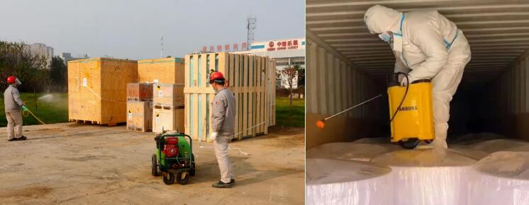 中國(guó)樂(lè)凱集團(tuán)公共事業(yè)部嚴(yán)格落實(shí)防疫要求,進(jìn)口到貨采取“多重消毒”,即進(jìn)口集裝箱進(jìn)入卸料區(qū)后,由消毒人員對(duì)車輛和集裝箱進(jìn)行整體的外部消毒;打開(kāi)集裝箱箱門后,消毒人員進(jìn)入集裝箱,對(duì)箱內(nèi)貨物進(jìn)行二次消毒 ,貨物卸車后消毒人員對(duì)貨物進(jìn)行全方位消毒。中高風(fēng)險(xiǎn)區(qū)到貨采取卸貨后集中全方位消毒。